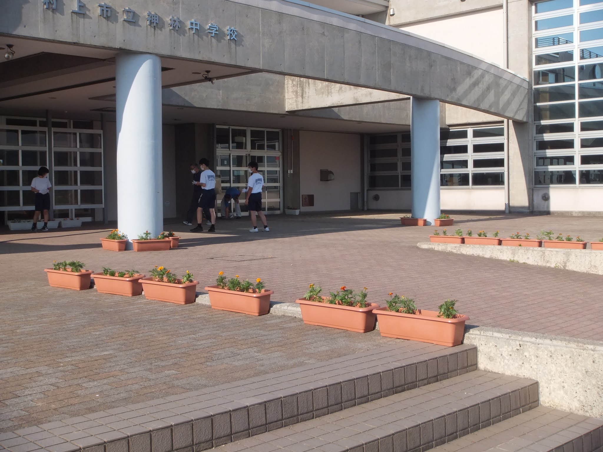 放課後に環境委員がプランターに花の苗を植えました。